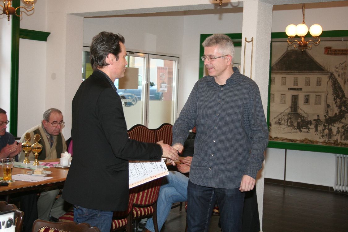 Bronzene Ehrennadel des HLV fü Gerd Hoffmann, überreicht von Klaus Schuder (HLV)