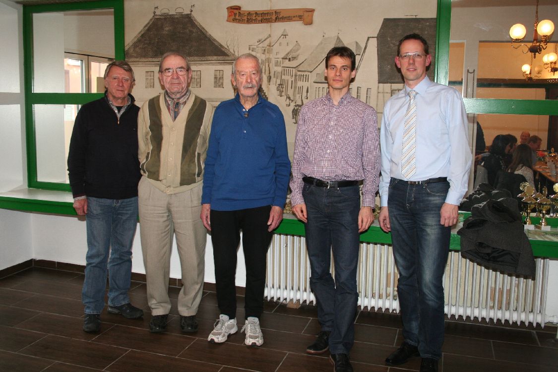 Ehrungen für Aktive: Hubert Drews, Hans Frank, Kurt Hemetsberger, Jürgen Reiser und Vorsitzender Stefan Weis