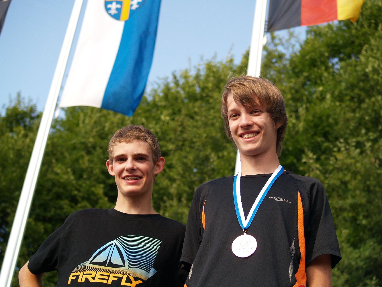 Sebastian Frank und Joshua Weiß auf der Tribüne in St. Wendel