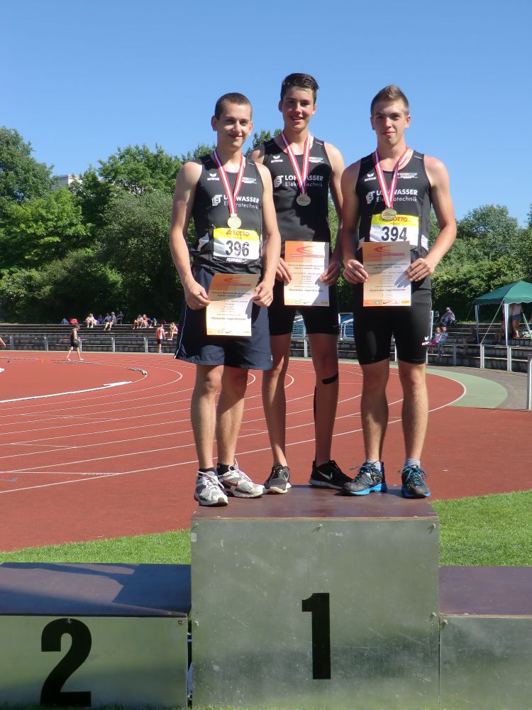 Jan-Luca Hoffmann, Sascha Becht und Alexander Lück erkämpften am Wochenende (15./16.6.) in Darmstadt bei den Hessischen Mehrkampfmeisterschaften mit 12895 Punkten den Mannschaftstitel im Zehnkampf der Altersklasse U18. Die TSV-Athleten zeigten bei sommerlichen Temperaturen eine starke Performance und erzielten zahlreiche Bestleistungen. Jan-Luca Hoffmann, der vor zwei Wochen schon den Hessenmeistertitel im Hochsprung gewann, belegte in der Einzelwertung in seinem ersten Zehnkampfjahr mit 5387 Punkten einen starken zweiten Platz (er erzielte u.a. Bestleistungen im Weitsprung mit 6,03m, im Kugelstoßen mit 13,27m, im Stabhochsprung mit 3,00m und im Speerwurf mit 38,72m).