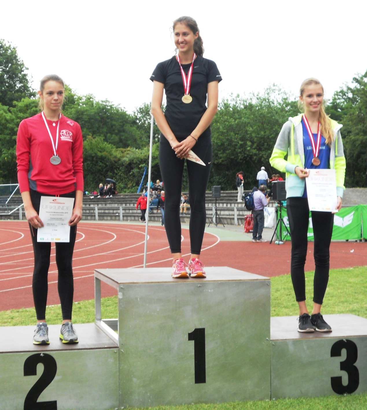 Lena Geyer (LGO/TSV Erbach, rechts) erringt die Bronzemedaille bei den Hessischen Meisterschaften 2015. (Foto: TSV Erbach)